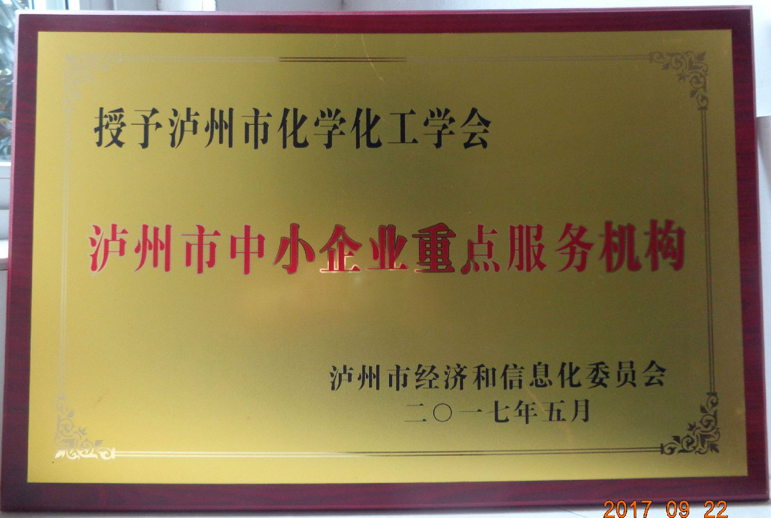 泸州市化学化工学会成立于一九六○年七月,是一个跨行业,跨部门的专业性、学术性、服务性的,具有独立法人资格的社会团体。主管部门是泸州市经济和信息化委员会,登记管理机关是泸州市民政局,是泸州市科学技术协会的组成部分。泸州市化学化工学会先后评为泸州市科协系统“2009-2013年度先进集体”,2013年、2016年泸州市劳动竞赛委员会 “先进集体”、“优秀组织单位”;2015年12月获得“中国社会组织评估等级”AAA级社会组织;2017年6月审核认定为“泸州市中小企业重点服务机构”。