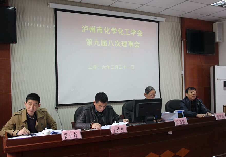 2016年3月31日,泸州市化学化工学会九届八次理事会在学会办公楼会议室举行,四川天华股份有限公司、四川省古蔺郎酒厂有限公司、四川银鸽竹浆纸业有限公司、中国航天科技集团公司川南机械厂、四川众邦制药有限公司、泸州市产品质量监督检验所、泸州鑫福化工有限公司、泸州长江液压密封件有限公司、四川恒固建设工程检测有限公司、四川天宇油脂化学有限公司、四川天寿药业有限公司、西南医科大学、泸州市新贝尔化工有限公司、泸州北方化学工业有限公司、四川新火炬化工有限责任公司、四川凯达化工有限公司、泸州大名工程咨询有限公司、四川杏林医疗器械有限公司、四川天一科技股份有限公司泸州分公司、泸州华润兴泸燃气有限公司等20个会员单位共25名理事及会员代表参加了会议。泸州市化学化工学会顾问江相麒同志应邀到会指导。会议总结了2015年的工作,提出了2016年工作安排意见。分析测试专业委员会、机械专业委员会、医药专业委员会就2016年度的工作重点进行了发言。